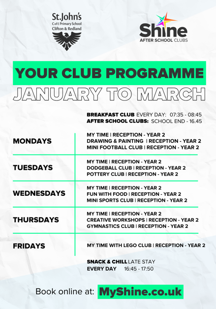 At St John’s Primary we try to provide activities to enrich the experiences of our children beyond the school day and pride ourselves on having a wide variety of clubs that we hope the children enjoy.